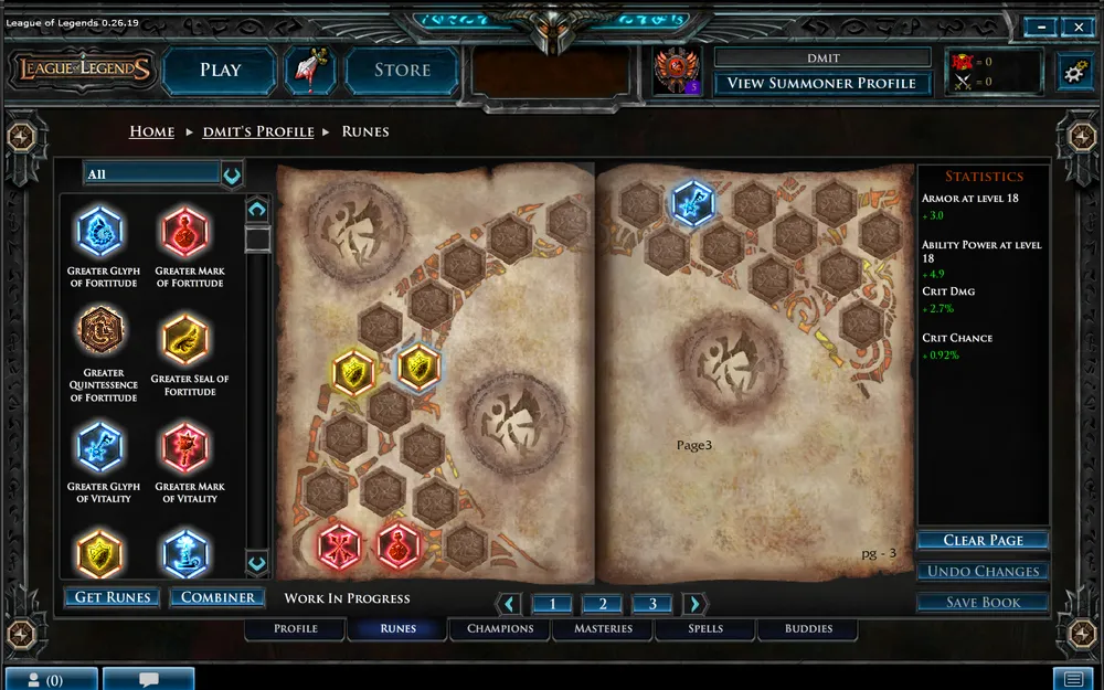 В игре есть книга рун, с каждым новым уровнем вашей учетной записи в вашей книге открывается дополнительный слот для руны. Руны можно покупать в магазине за игровую валюту (дают после каждой игры). Руны бывают 3 видов – Тир 1, тир 2, тир 3, в каждом из которых 4 цвета: красные, синие, желтые и специальные (для них 3 больших слота). Естественно чем выше Тир, тем лучше руна. Ненужные можно комбинировать и получать что-то новое, в специальном меню.